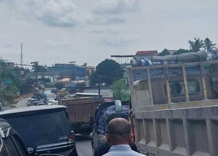 PADAT DAN MACET: Ruas jalan nasional Jambi-Muara Bulian, tepatnya di kawasan Unja, Mendalo Darat, selalu macet setiap harinya. --