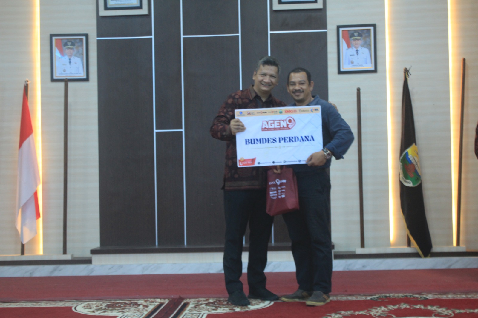 Pemimpin Cabang Bank Jambi Sengeti Tharmizi saat penyerahan simbolis Agen 9 Bumdes Perdana-Foto: Istimewa-