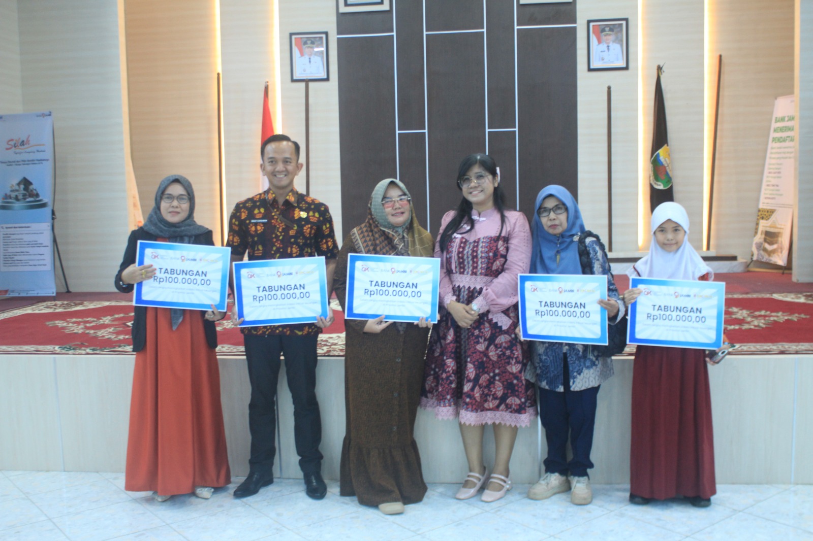 Deputi OJK Provinsi Jambi Septarini Geminastitie bersama peserta yang beruntung mendapatkan hadiah Tabungan-Foto: Istimewa-