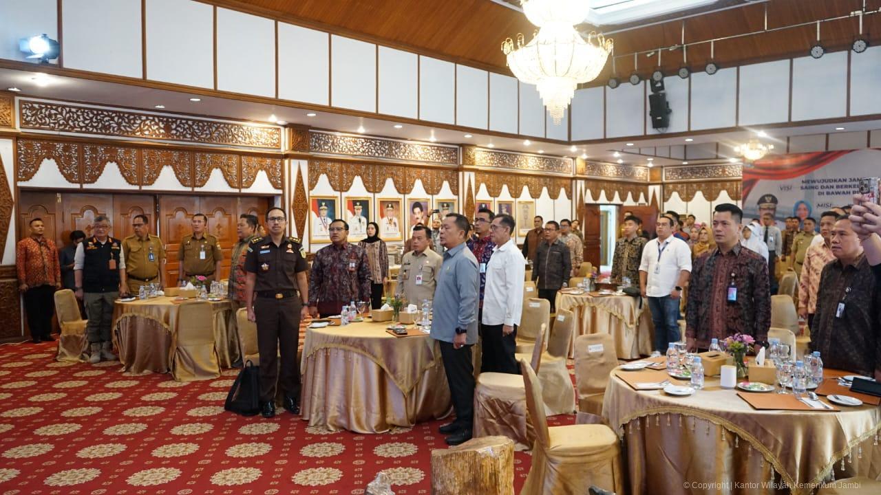 Acara ini dihadiri oleh berbagai pemangku kepentingan, termasuk Otoritas Jasa Keuangan (OJK) Jambi, Polda Jambi, Kejaksaan Tinggi Jambi, Badan Intelijen Negara (BIN) Provinsi Jambi, serta 10 instansi terkait lainnya.