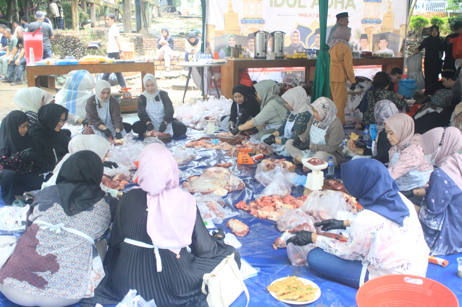 “Selanjutnya, daging qurban kami distribusikan kepada warga sekitar yang berhak menerima,” jelasnya.