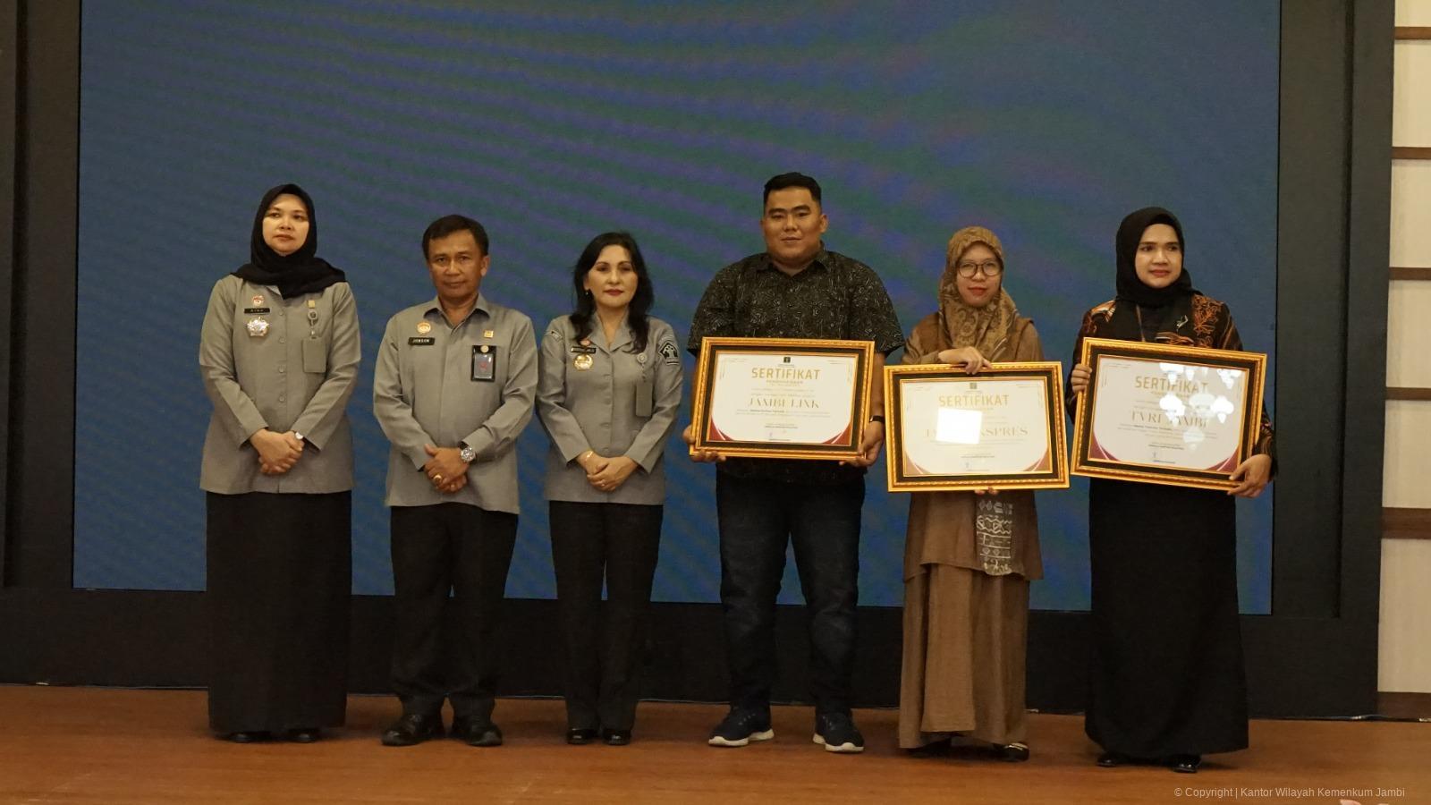 Selain penyerahan sertifikat penghargaan dan Kekayaan Intelektual, Kantor Wilayah Kementerian Hukum Jambi juga memberikan beberapa penghargaan kepada beberapa Lembaga terkait, diantaranya Organisasi Bantuan Hukum, Ikatan Notaris Provinsi Jambi, Kelurahan penyelenggara Posbankum, Universitas dan beberapa tempat usaha serta media local yang ada di Kota Jambi.