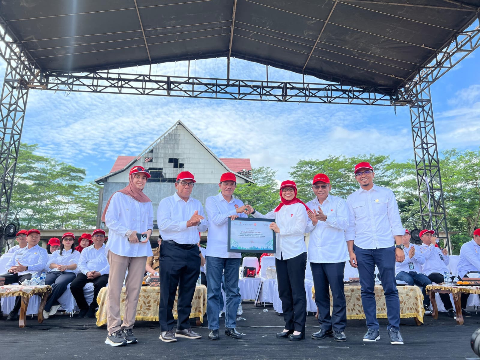 Penyerahan dua piagam penghargaan Rekor Muri tersebut diterima langsung oleh Rektor Universitas Jambi Prof. Prof. Dr. Helmi, S.H., M.H., Direktur Analis Informasi dan Manajemen Krisis Pasar Modal, Keuangan Derivatif, dan Bursa Karbon Otoritas Jasa Keuangan Sujanto, serta Kepala Otoritas Jasa Keuangan Provinsi Jambi Yan Iswara Rosya.