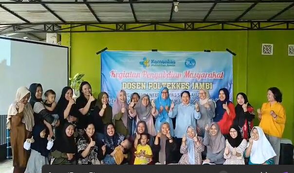 Foto bersama Tim Pengabmas Poltekkes Kemenkes Jambi dan warga yang mendapatkan edukasi-Ist-