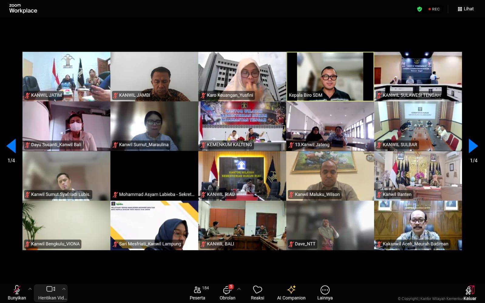 Kegiatan ini turut diikuti oleh Kepala Bagian Tata Usaha dan Umum, Ermasdon, serta Tim SDM Kanwil Kementerian Hukum Jambi, bersama seluruh jajaran unit pelaksana dari seluruh Indonesia.