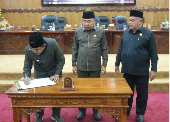 BATANGHARI, JAMBIEKSPRES.CO.ID – Dewan Perwakilan Rakyat Daerah Batanghari (DPRD) menggelar Paripurna dalam rangka Penandatanganan Berita Acara Nota Kesepakatan Antara Bupati Batang Hari Dengan DPRD Tentang KUPA dan PPAS Perubahan APBD Tahun Anggaran 2025 Kabupaten Batang Hari Jum'at (13/06/25).
