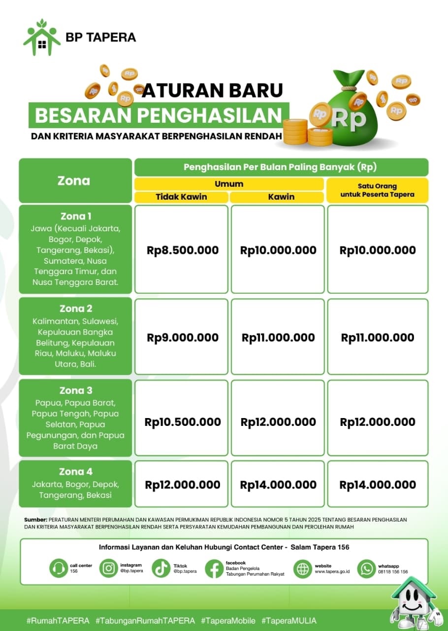 Permen PKP 5/2025 tentang Kriteria MBR Sudah Terbit, Berikut Aturan Baru Besaran Penghasilan Sesuai Zonasi--