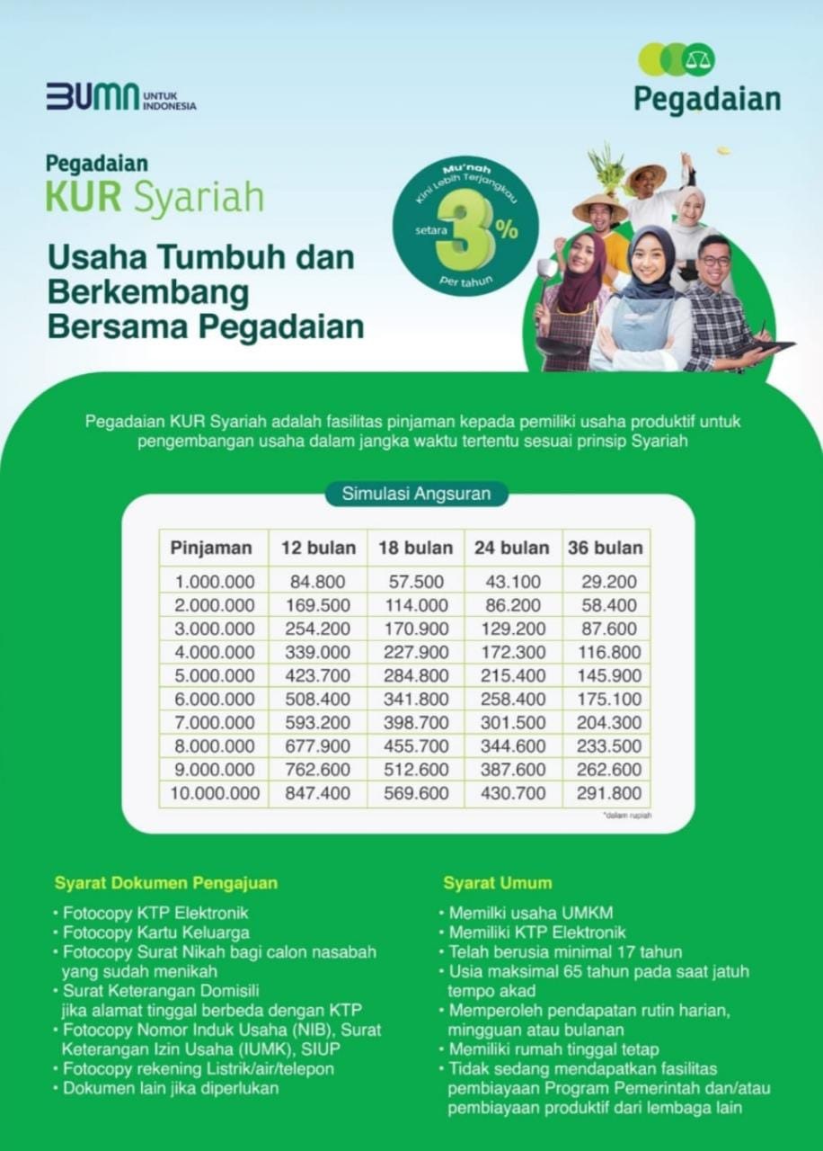 KUR di Pegadaian Syariah Murah Meriah, Pinjaman 9 Juta Cicilan Cuma 200 Ribuan, Begini Caranya