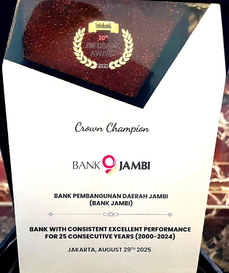 30th Infobank Award 2025, dan memberikan predikat Crown Champion berupa “Bank dengan Kinerja Sangat Baik yang Konsisten Selama 25 Tahun Berturut-turut (2000-2024), dan penghargaan tersebut salah satunya diberikan kepada Bank Jambi.--