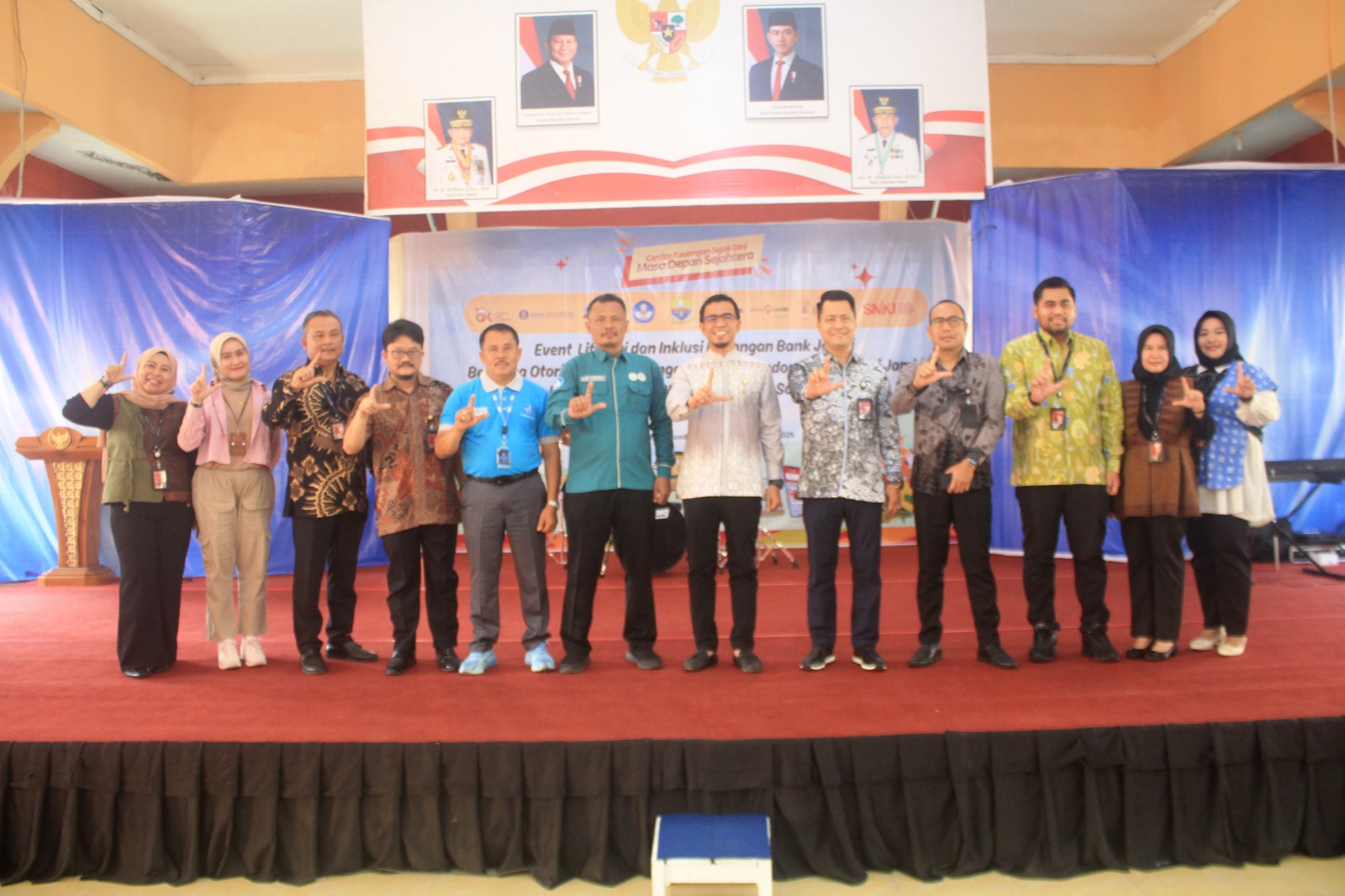 Foto bersama Kepala OJK Provinsi Jamb, Direktur Treasury Dana, IT dan Digital, Kepala Sekolah SLBN Sri Soedewi, Pimdiv Treasury dan Dana, Pimdiv IT, Pimdiv e-Banking, Kabid Perlindungan Konsumen, Pemimpin KCU, Wakil Pimca Syariah, Pinca Sutomo, perwakilan--