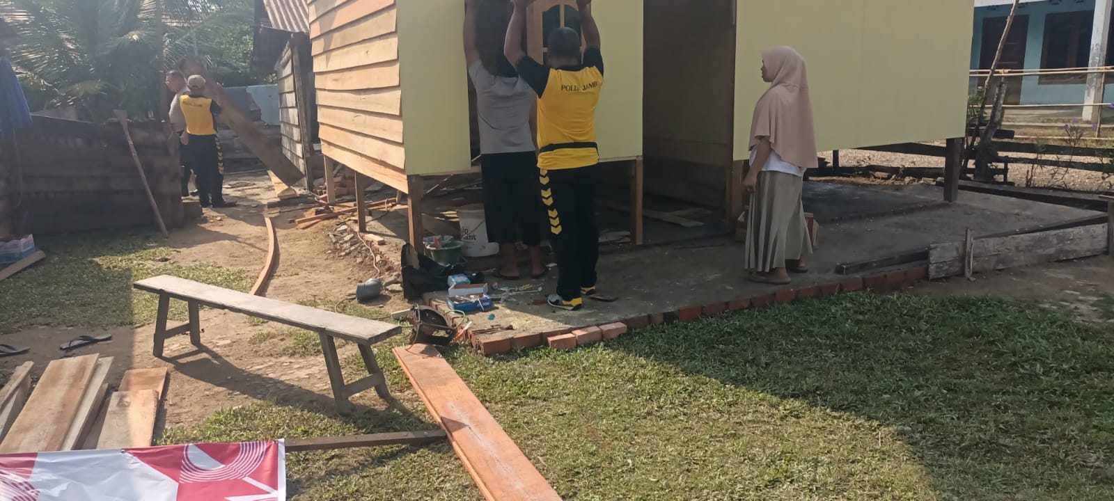 Dengan semangat gotong royong, anggota Polsek, bahu-membahu membangun kembali rumah milik Rohani agar menjadi tempat tinggal yang lebih layak, aman, dan nyaman.