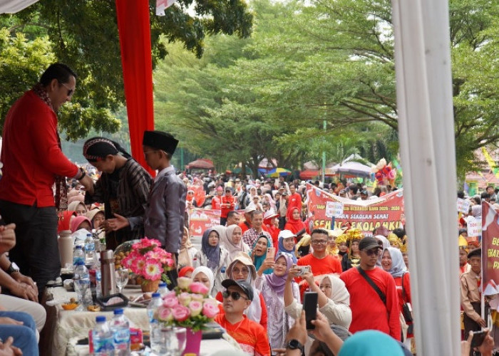 BANGKO, JAMBIEKSPRES.CO.ID - Ribuan pegawai di jajaran Pemkab Merangin sangat antusias menyimak ceramah Ustadz Samsuardi (Bombom Kampar), pada peringatan Maulid Nabi Muhammad SAW di halaman depan kantor bupati Merangin, Senin (22/9).