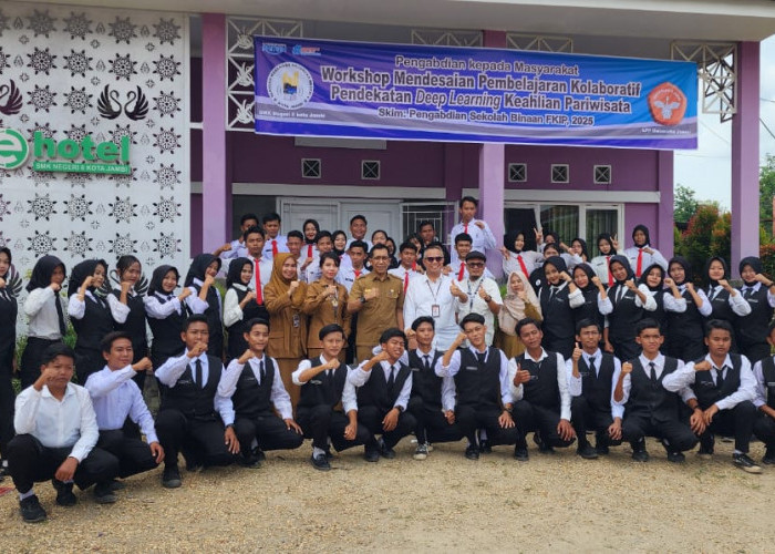 JAMBIEKSPRES.CO.ID - Kolaborasi kampus dan sekolah kembali terwujud dalam bentuk nyata. Tim dosen dari Fakultas Keguruan dan Ilmu Pendidikan (FKIP) Universitas Jambi melaksanakan Pengabdian kepada Masyarakat (PkM) melalui Workshop Mendesain Pembelajaran Kolaboratif dengan Pendekatan Deep Learning di SMKN 6 Kota Jambi.